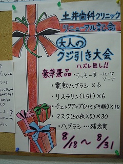 豪華景品?のゆくえが気になったものの、射止めた人は大喜びしてくれたので私も大満足の“土井歯科クリニックリニューアル記念・大人のクジ引き大会”となりました。