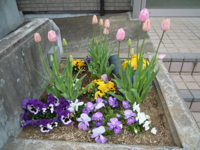 そこで、当院入口脇にある花壇にもパンジーだけではなく春到来の彩りを加えようと早速行動してみました。