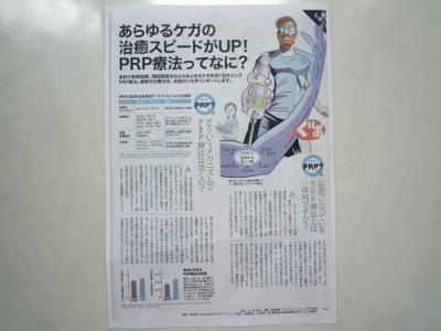 この特集のことは事前に研究会事務局から、メールと記事が配信されていましたが、一般の人のあいだにPRP治療を知る人がまた増えてくれたことはとてもうれしいことです。