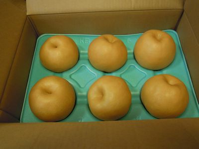 10kg入りと書いてある箱を開けてみたら、“なんということでしょう!”大きな大きな梨が顔を覗かせてまたまたびっくり。