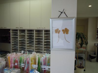 以前にも四つ葉のクローバーをいただき、幸運の来訪を願い押し花にして待合室に飾っていました。