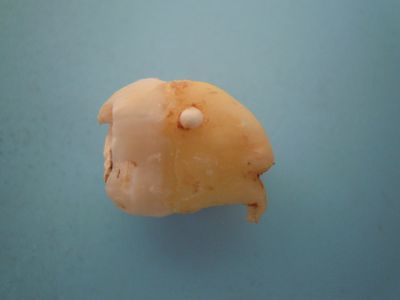 どこからどう見ても目にみえる部分は、エナメル滴という歯の根の部分にできたエナメル質の塊で言わば奇形みたいなものです。