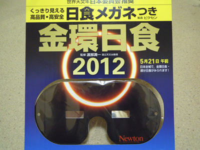 実際のところは科学雑誌の「おまけ」に付いていたものなんですが・・・ 今の所、金環日食ばかりが注目を浴びていますが、6月6日にも「金星の太陽面通過」という天体ショーが見られ、この時もこの「日食メガネ」を活用できます。そもそもこの天体ショーが次に見られるのは西暦2117年12月11日らしいのでこちらを見逃すともう一度見ることはほとんど困難です。なんとも超レアな天体ショーなんです。