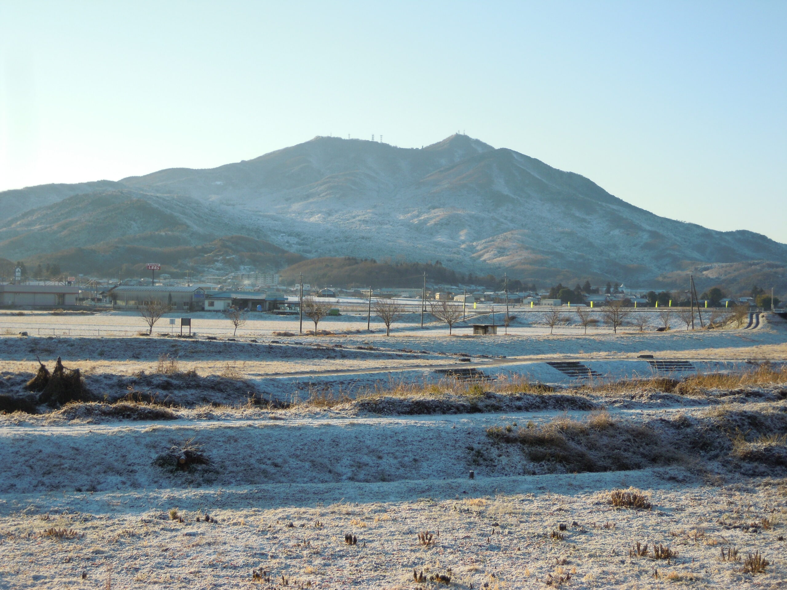 地面は霜柱です。それでも雪国のように雪は降らないし、